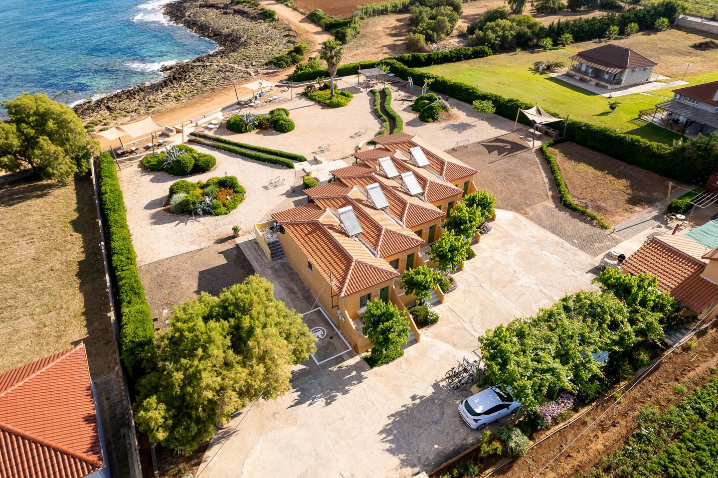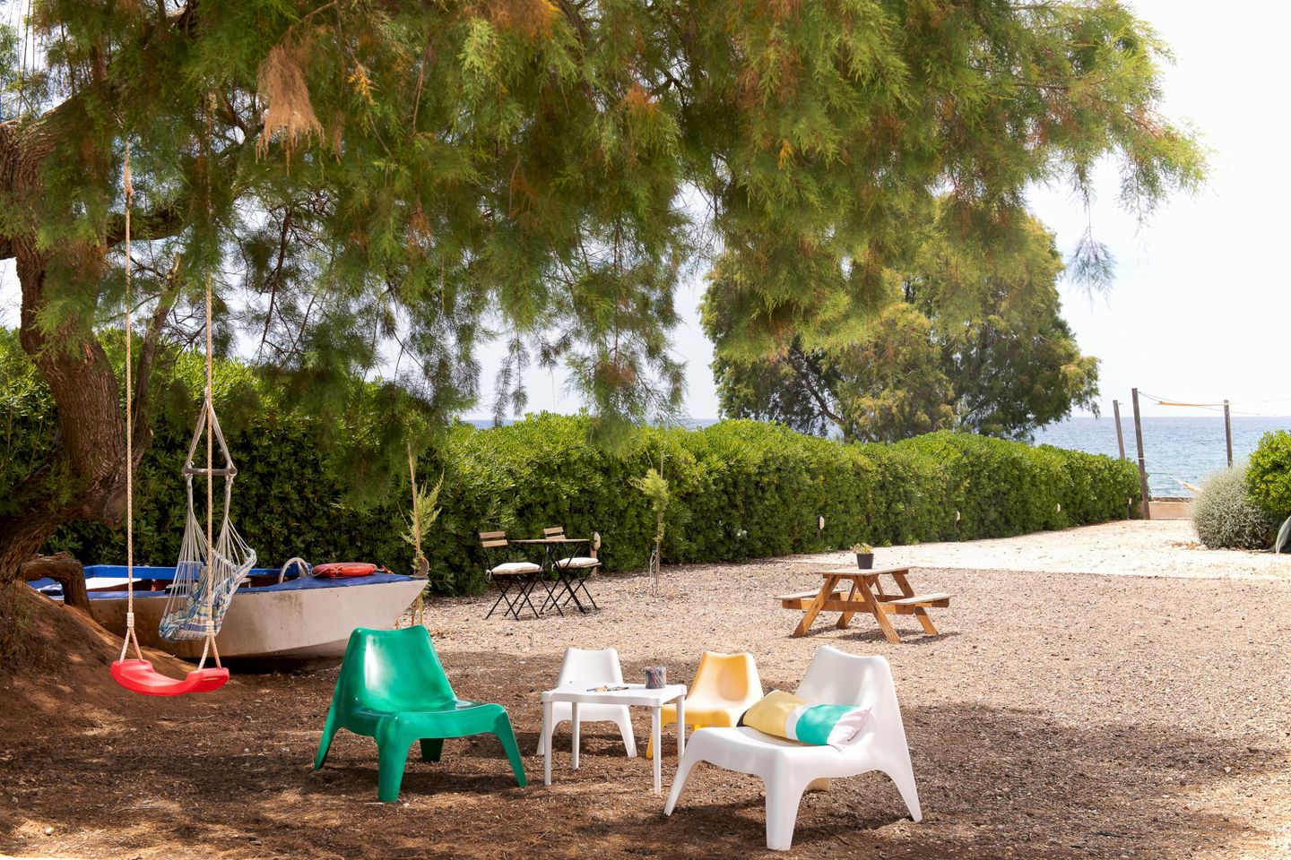 Die 1985 erbauten Esperides-Häuser wurden 2008, 2018 und 2023 renoviert. Die Einrichtung ist schlicht und farbenfroh gestaltet und vermittelt eine warme, gemütliche Atmosphäre. Im Außenbereich dominieren erdige Farben sowie natürliche, lokale Materialien. Von der vorderen Terrasse mit Gartenmöbeln gelangt man direkt in den Garten mit herrlichem Ausblick auf das Meer und die Küstenlandschaft – und mit direktem Zugang zum Wasser. An das Wohnzimmer mit Sofa und zwei Einzelbetten schließen sich die offene Küchenzeile, das Schlafzimmer und das Bad an. Vom Wohnzimmer führt ein direkter Ausgang auf die vordere, überdachte Terrasse mit traumhaftem Meerblick und mediterraner Umgebung, vom Schlafzimmer ein weiterer Ausgang auf die rückwärtige Terrasse.
