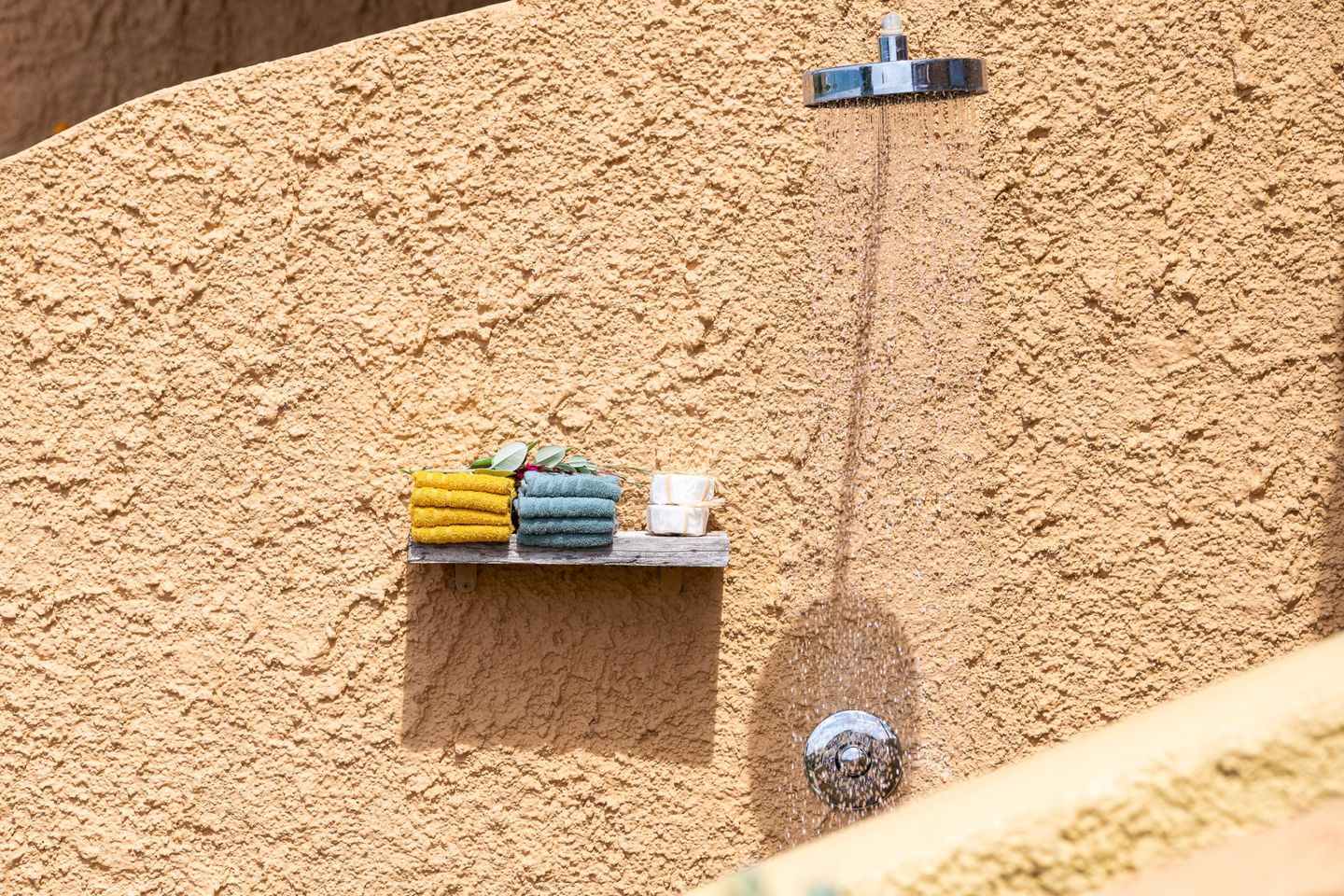 Die Zuteilung der Häuser erfolgt vor Ort durch den Vermieter. Die gezeigten Fotos sind Wohnbeispiele aus der Anlage und können je nach Haus leicht variieren. Die Häuser 2–4 verfügen über eigene Außenduschen, während die Häuser 1 und 5 die gemeinschaftliche Außendusche auf dem Grundstück nutzen. Seitlich des Eckhauses 1 befindet sich zudem eine Ladestation für E-Autos. Die Bezahlung erfolgt bequem über eine App.