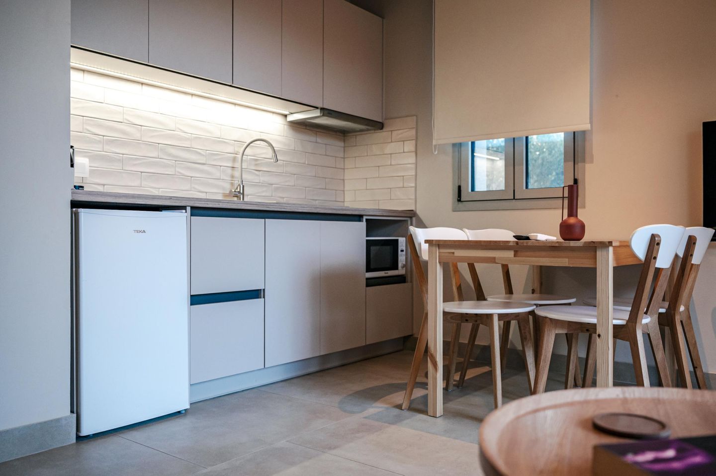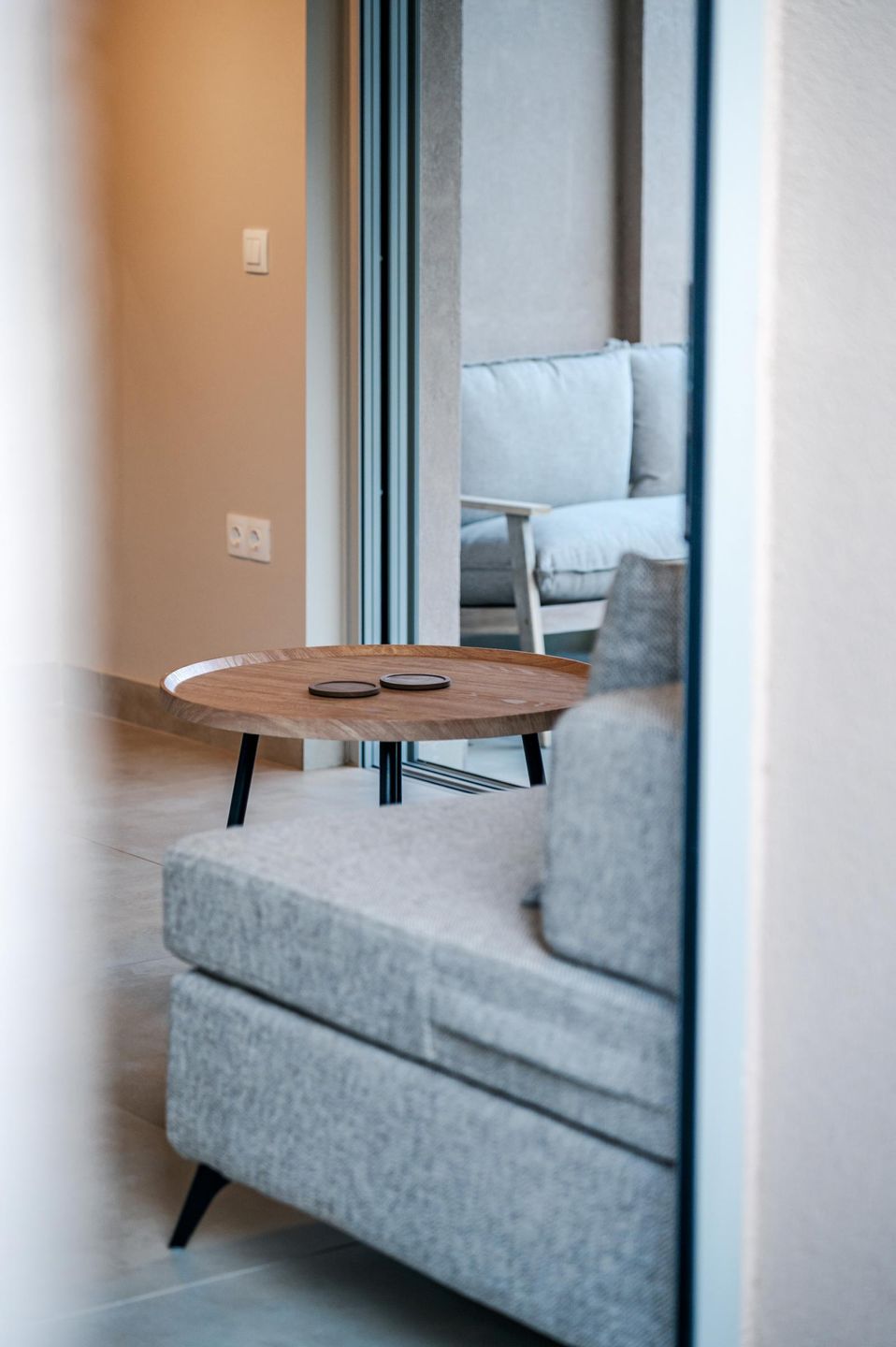 Am rechten Ende der Hausreihe – etwas abseits vom Pool und in unmittelbarer Nähe zur Rezeption sowie dem Vermieterhaus – befindet sich das Junior-Einzelhaus in ruhiger, freistehender Lage. Das komfortable, zweistöckige Feriendomizil überzeugt durch seine helle, freundliche Gestaltung und bietet großzügigen Raum und zeitgemäßen Komfort. Sanfte Pastelltöne, ausgewählte Hölzer und moderne, klarlinige Möbel verbinden sich zu einem harmonischen, behaglichen Wohnambiente.
