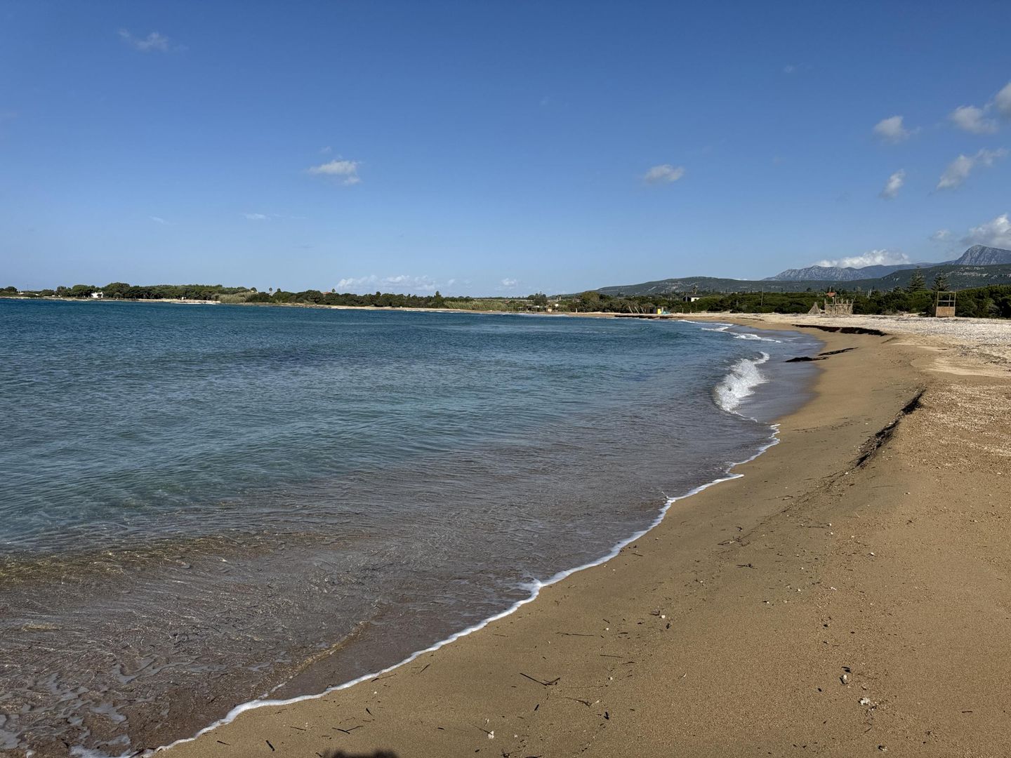 Die südwestliche Küste Messeniens bietet zahlreiche Sandstrände mit kristallklarem Wasser – von langen Sandstränden bis hin zu kleinen, versteckten Buchten. Die nächstgelegenen Strände zählen zu den schönsten der Region. Der nah gelegene Lagouvardos-Strand ist ein weitläufiger Sandstrand, umgeben von Pinien und einer eindrucksvollen Bergkulisse – ideal zum Baden, Surfen, Kanufahren, Schnorcheln oder Angeln. Weitere Strände im Umkreis von bis zu 20 km sind Voidokilia mit seiner halbkreisförmigen Bucht, Goldcost (Mati) mit feinem Sand sowie die malerischen Buchten von Barlas, Vromoneri, Petrochori und Romanos.