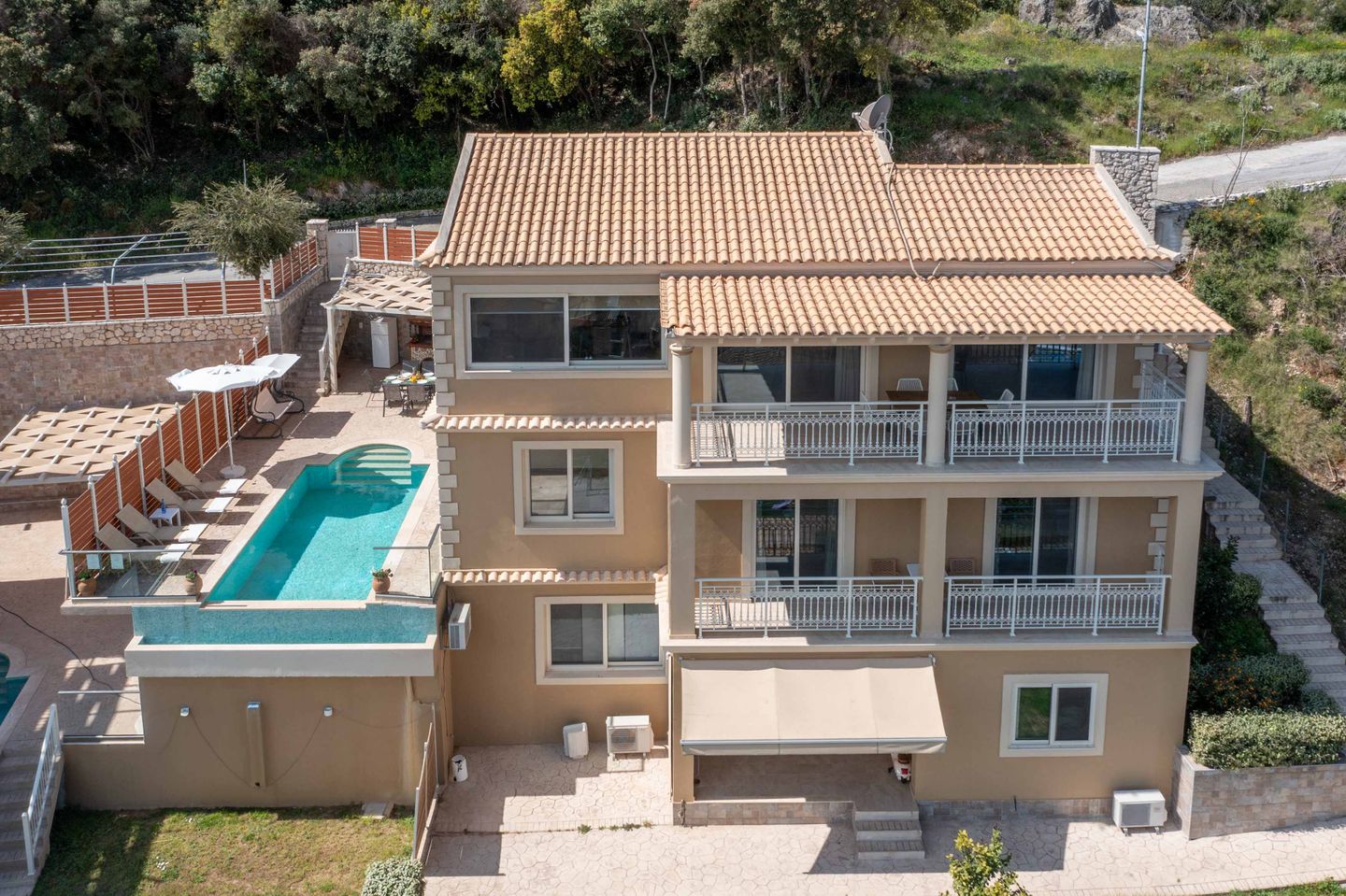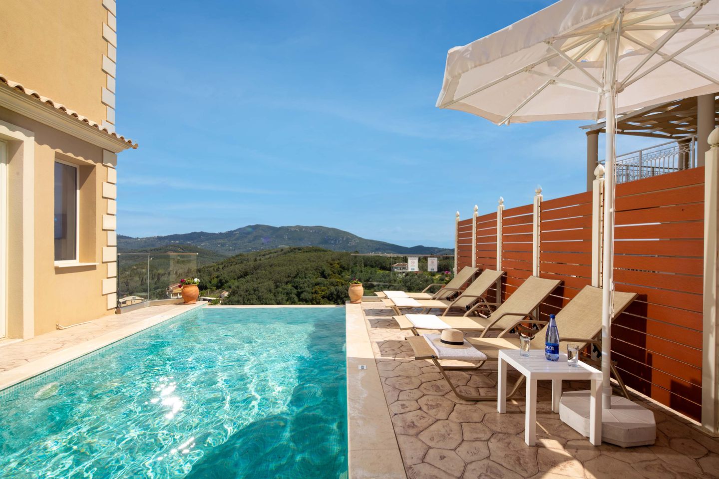 Luxurious villa with private pool, in a quiet, beautiful hillside location above the village of Aghios Mattaios, on the south-western side of the island of Corfu.