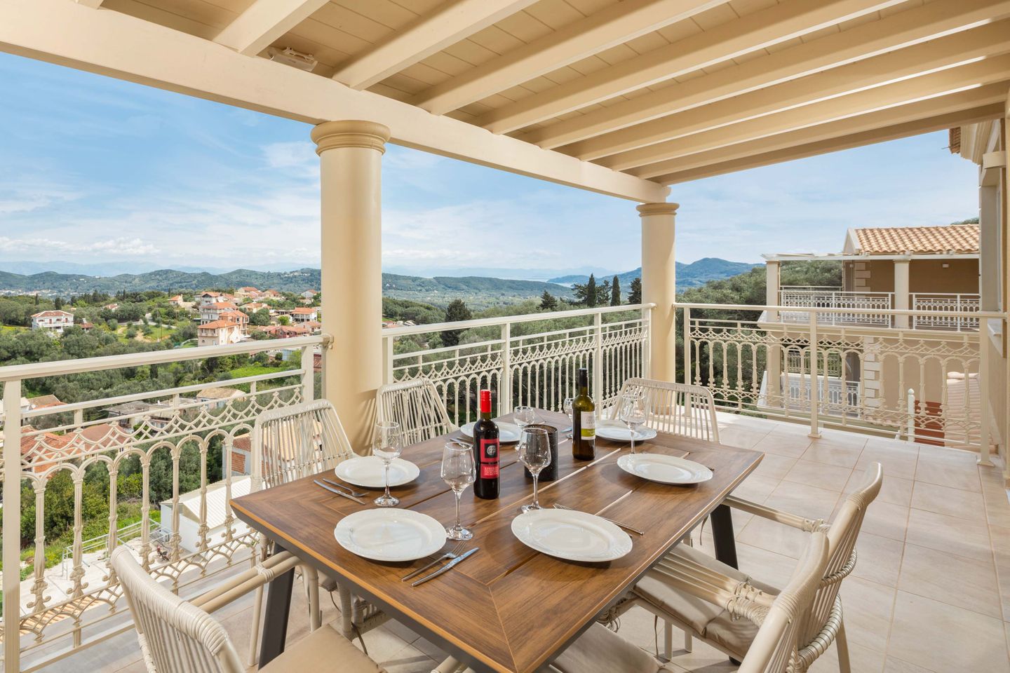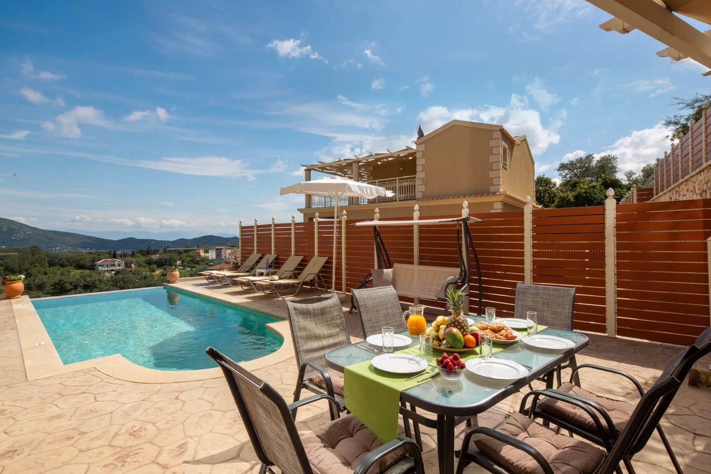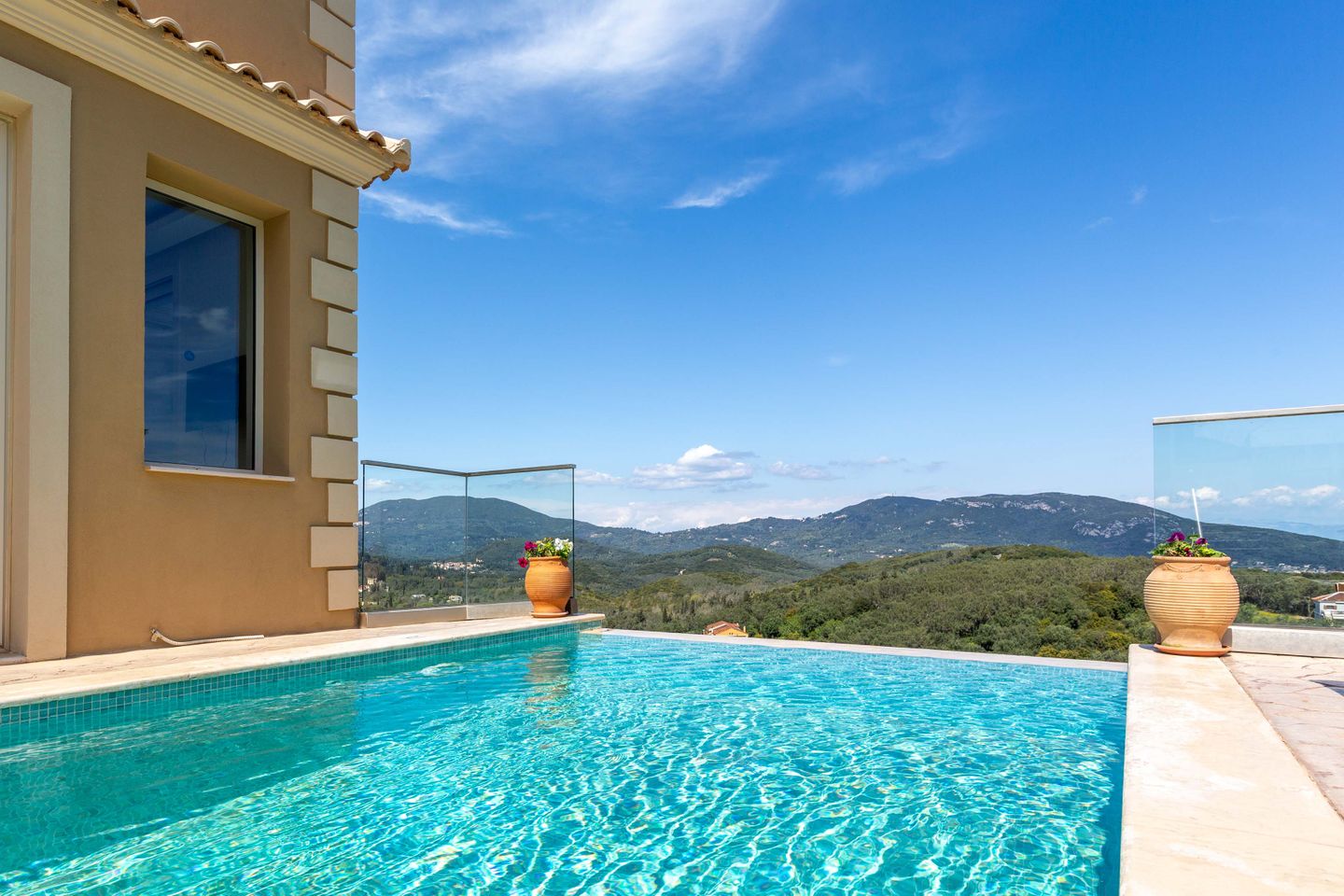 The luxurious villa with private pool is situated in a panoramic position above the village Aghios Mattaios, on the southwestern coast of the island of Corfu.