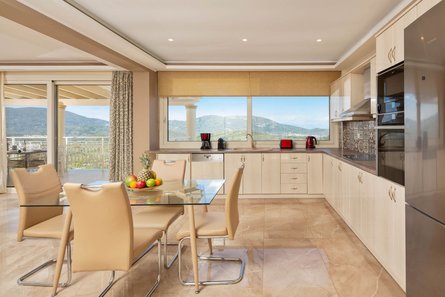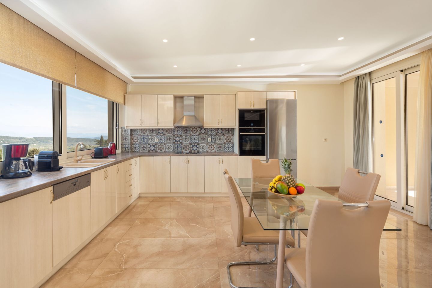 The luxurious villa MONASTIRI 1 is in a beautiful, quiet location above the roofs of Aghios Mattaios next to the villa PANTOKRATORAS, with a wonderful view of the surrounding landscape.