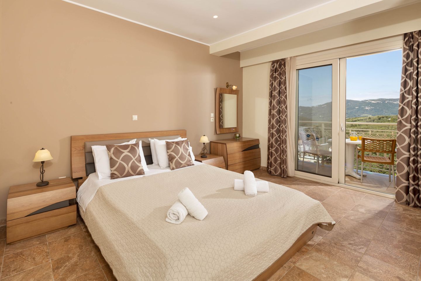 Newly built luxury villa with private pool, in beautiful panoramic position above the village of Aghios Mattaios, on the southwestern side of the Ionian island of Corfu.