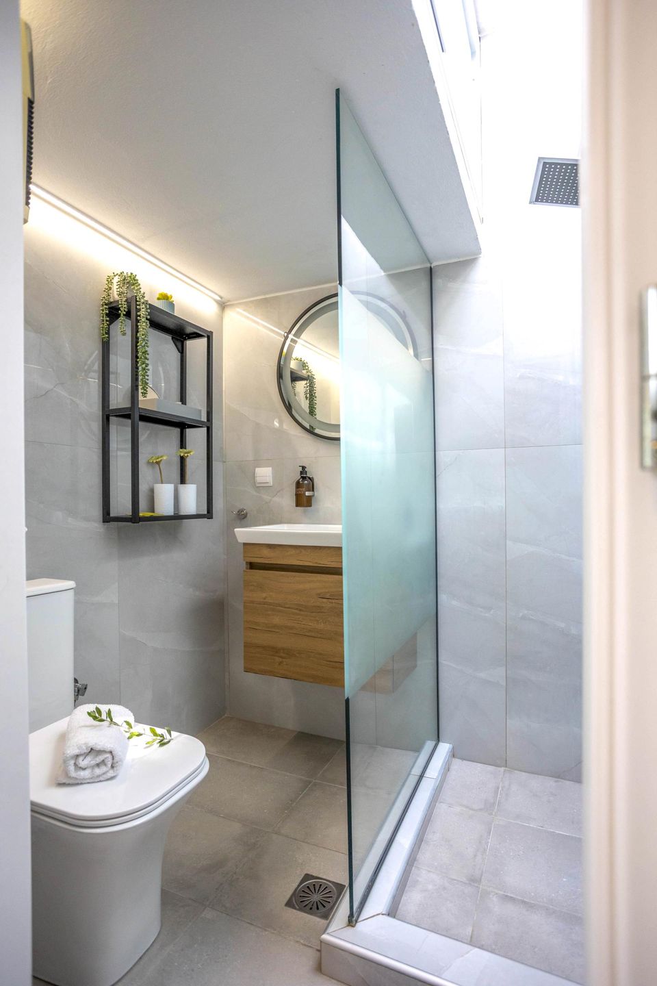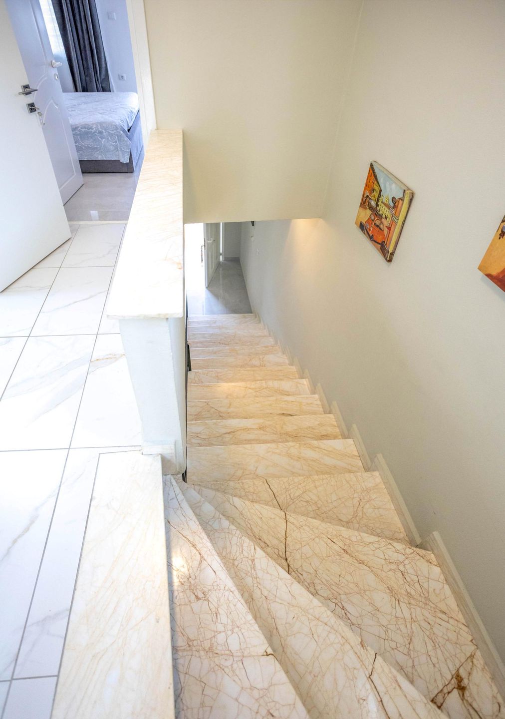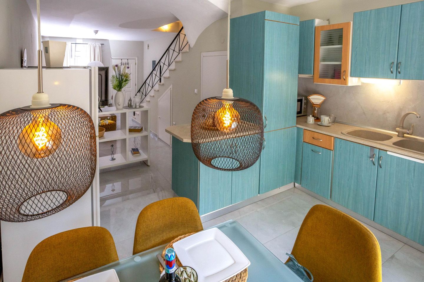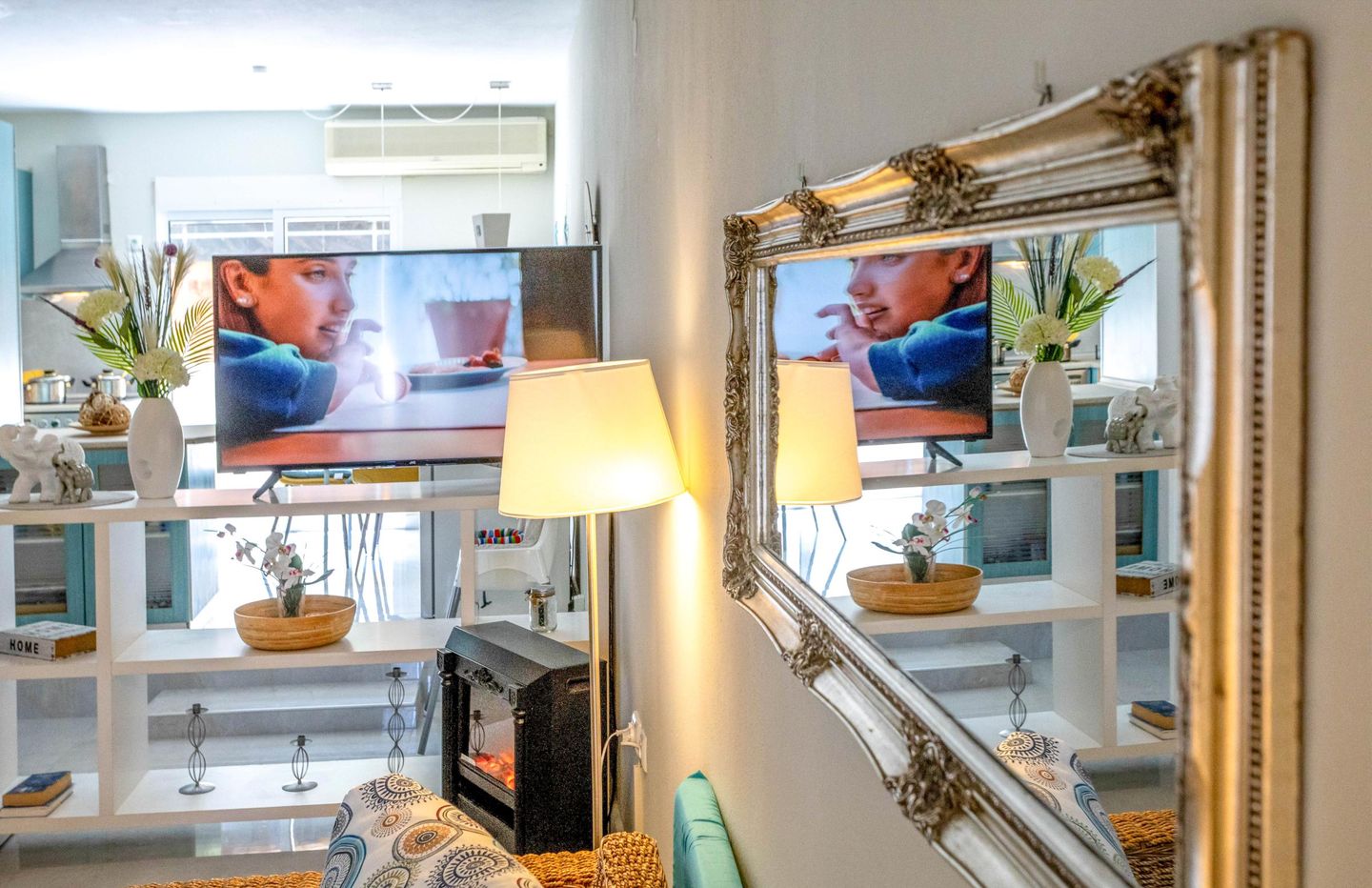 The well-kept three-storey holiday house LITSA (left half of the house) consists of the 1st and 2nd floor of the main building and the small granny annexe on the ground floor. Access to the main building is via some stairs. Adjoining to the living room on the first floor is the semi-open kitchen and the guest toilet. From the living room you have access to a roofed front terrace. On the second floor there are 2 bedrooms and the shared bath. One of the bedrooms has direct access to a private front terrace with a sea view. The second bedroom has a small balcony to the rear.