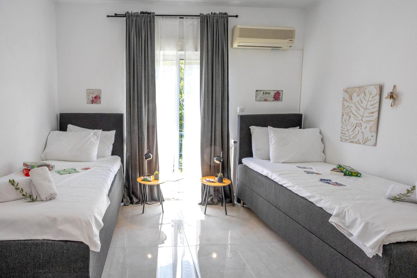 The detached holiday house Erika is in a beautiful location above the sea with a magnificent view of the bay of Aghios Nikolaos on the eastern coast of Sithonia, on Chalkidiki.